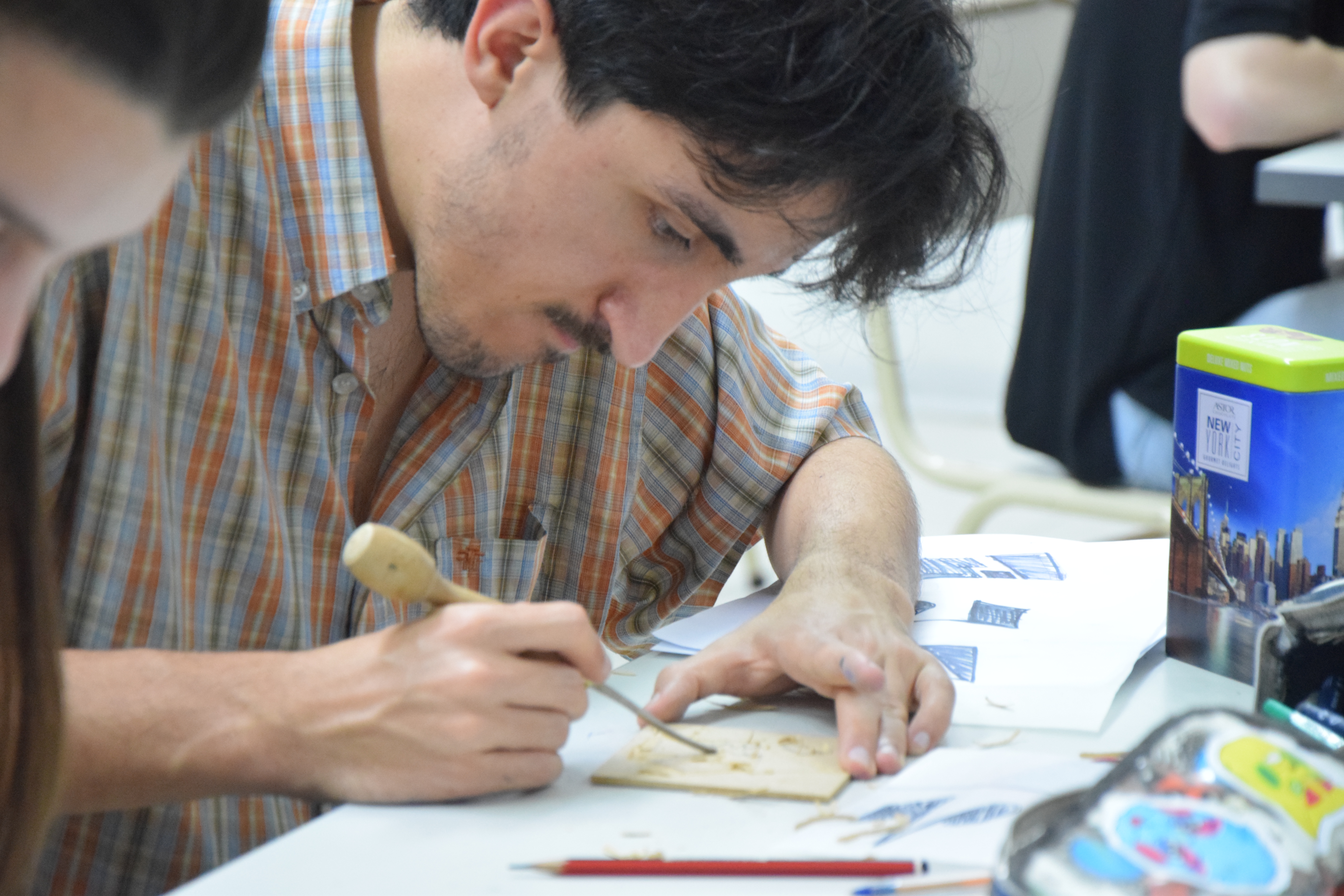 Este taller propone un ejercicio morfológico y tipográfico a través de una práctica 100% analógica que combina dibujo, grabado en madera e impresión artesanal. Un reencuentro con los oficios manuales, ideando letras con gubias en las manos.
