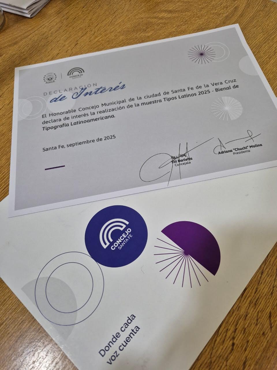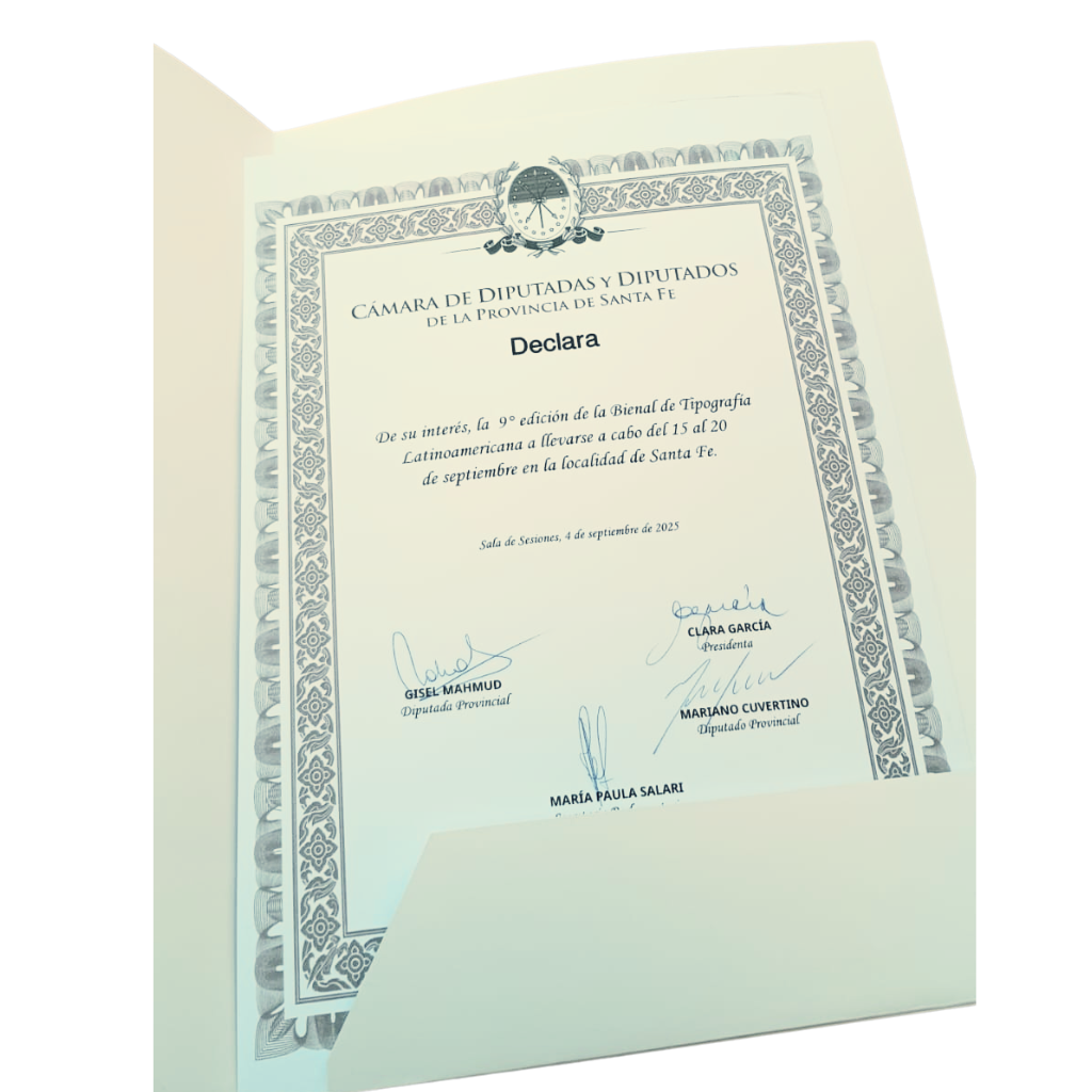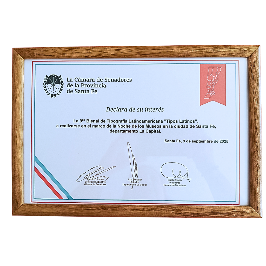 Agradeciendo a la Cámara de Diputados, Senadores y Concejales de la ciudad de Santa Fe, se recibieron numerosas adhesiones y muestras de apoyo a este evento. Desde Tipos Latinos, sede Santa Fe, nos sentimos suma gratitud por este reconocimiento.